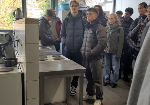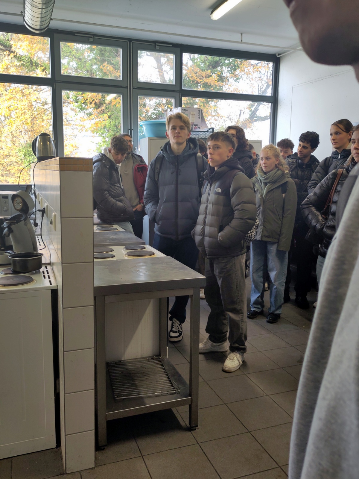 Die Teilnehmenden des Leistungsfachs Politik sowie des Seminarkurses durften zusammen mit Frau Hammer, Herrn Jäger und Herrn Mück einen Blick hinter die Kulissen einer Flüchtlingsunterkunft der Stadt Reutlingen werfen. Immanuel Blaich, im Sozialamt zuständig für die Unterbringung der Geflüchteten, führte die Gruppe durch das Gebäude und beantwortete Fragen. Vor Ort zu sehen, unter welchen Bedingungen Menschen leben, die ihre Heimat verlassen haben, und in Deutschland ganz neu anfangen müssen, beeindruckte die jungen Menschen. Die zahlreichen Fragen zeigten deutlich die Betroffenheit und die Komplexität des Themas.