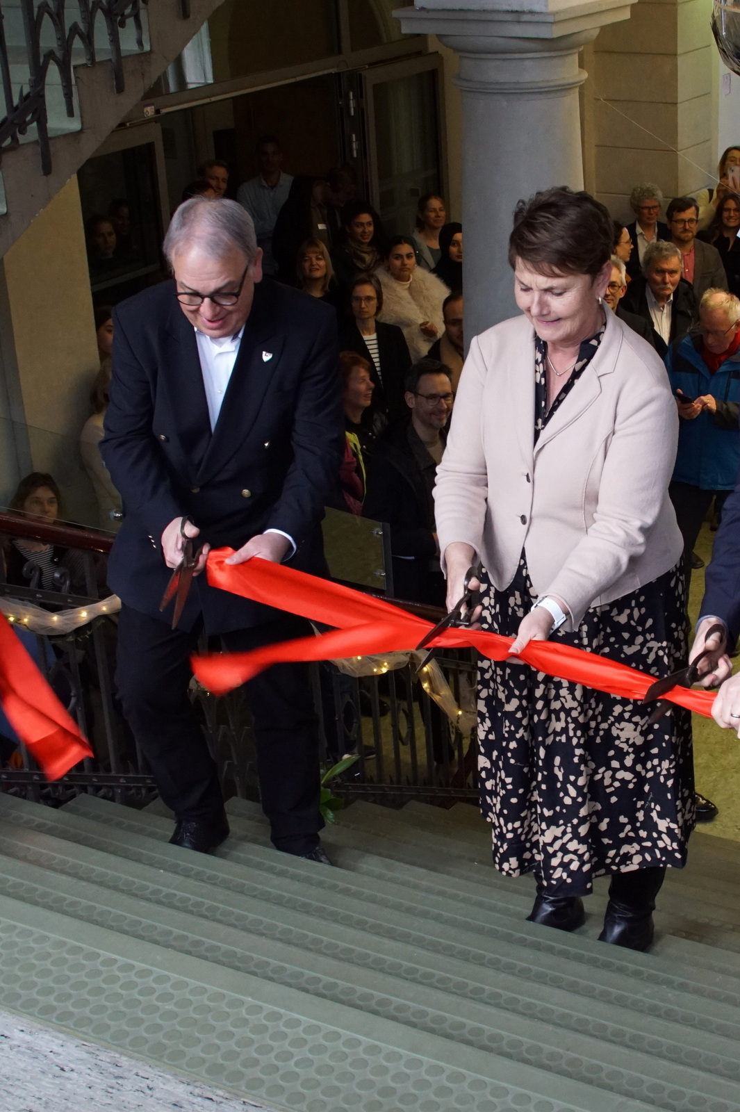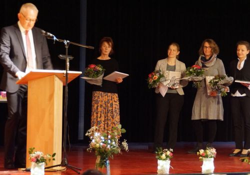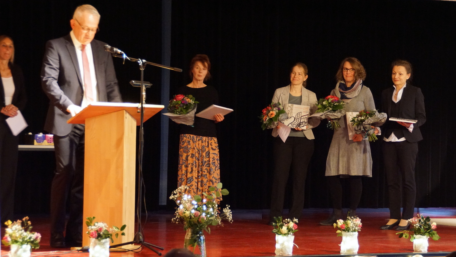 Der Oberbürgermeister betonte, dass ein Rückblick auf die 150 Jahre von Geschichte, Mut und Wandel erzähle und immer die Menschen an dieser Schule im Mittelpunkt gestanden hätten. Das Kepi sei immer, so Abteilungsleiterin Susanne Pacher vom Regierungspräsidium, ein Ort des „Förderns und Forderns“ gewesen, wie es das Motto des Kepi bis heute ist. Dass dies sich weit über den Bereich des Unterrichts erstrecke, zeige z.B. die Ganztagesbetreuung des Fördervereins for-kepi. Dass das Kepi sich im Laufe dieser 150 Jahre immer wieder verändert hat, betonte Rektor Thomas Moser in seiner Rede. Alleine der Ausbau der Digitalisierung in den letzten Jahren zeige, dass das Kepi mit der Zeit geht.
