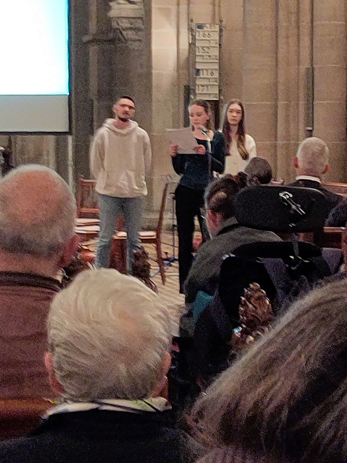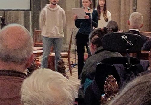 Am 9.November stand das Erinnern an die Reutlinger Jüdinnen und Juden, deren Leben durch die nationalsozialistische Verfolgung zerstört wurde, im Mittelpunkt. Unter der Überschrift „Über- Leben reden“haben Pauline Böbel, Antonia Dullstein, Elia Häußermann, Raphael Godot, Iva Maric und Anja Rück mit großer Ernsthaftigkeit und Empathie ausgewählte Biographien vorgestellt. Bereits seit dem Sommer haben sie mit Unterstützung des Stadtarchivs zu diesen Biographien recherchiert. Christof Piening und Uta Hauf haben die Schüler*innen unterstützt und begleitet.