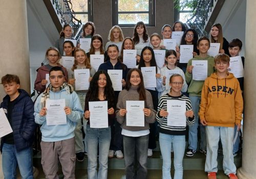 Am 17. Oktober 2025 erhielten 25 motivierte und engagierte Schüler*innen ihr Zertifikat als ausgebildete Nachhilfe-Mentor*innen. In einem mehrstündigen Seminar erhielten sie von Frau K. Ludwig hilfreiche Informationen zur Organisation und dem Ablauf von Nachhilfestunden, Tipps und Tricks für die Arbeit mit den jüngeren Schüler*innen, sie erfuhren wie sie fehlender Motivation, Versagensängsten oder Frustration begegnen können und diskutierten über ihre eigenen Erfahrungen beim Lernen. Verschiedene Materialien, die sie in der Arbeit mit ihren Schützlingen direkt zum Einsatz bringen können, rundeten das Seminar ab.